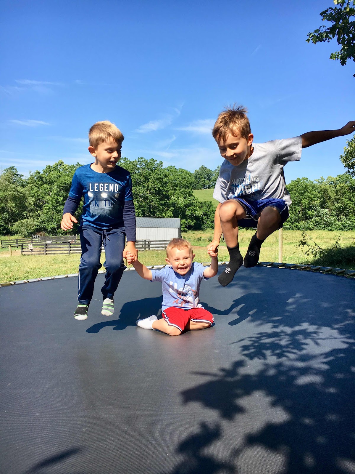 While I visited my friend Stacey and her family, Stephanie and Mom took the boys to the playground! They had a blast on the merry go round!